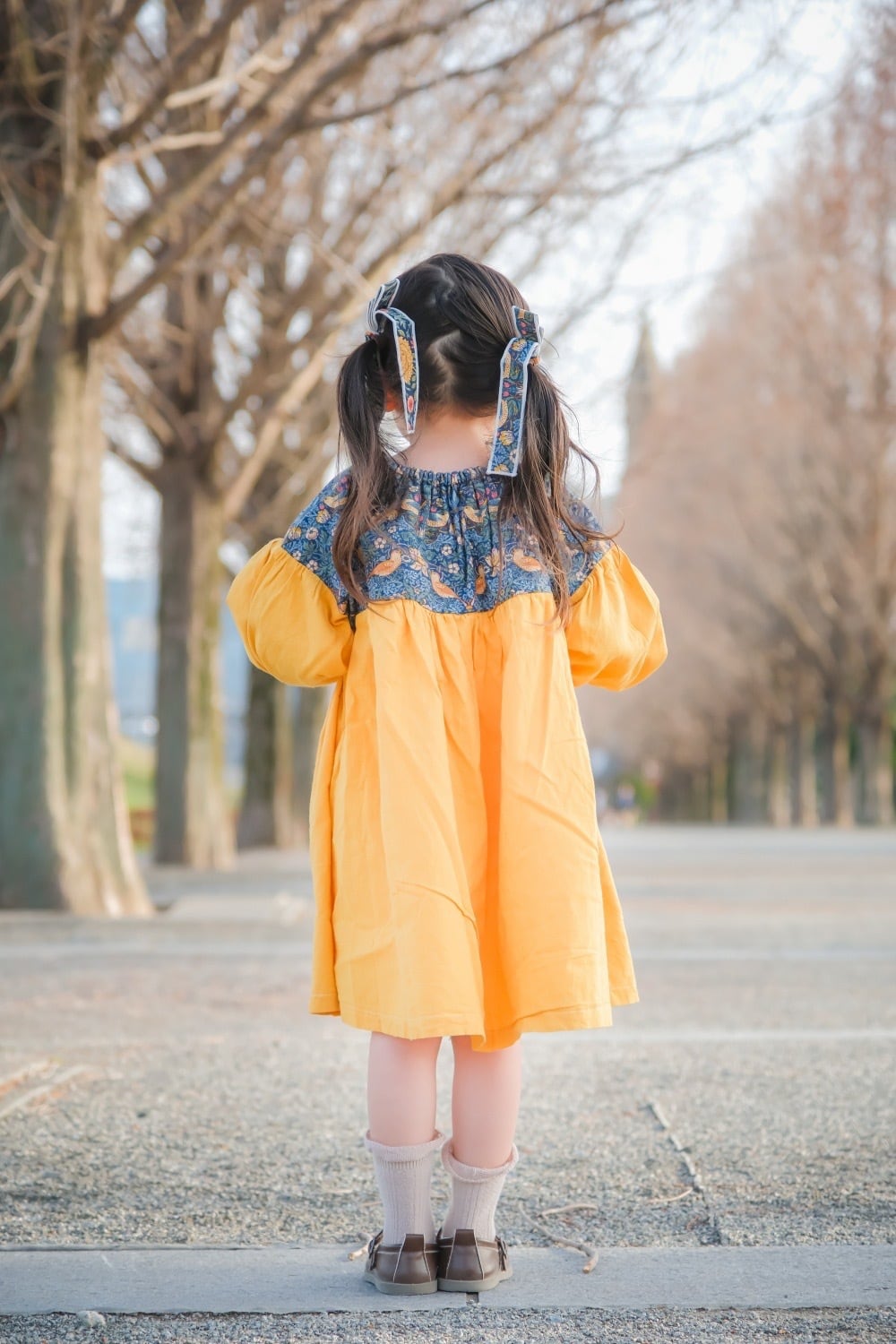 ぽわんの森* 自分でできた!を応援する、後ろ襟ぐりワンピース*【長袖】70㎝▸120㎝